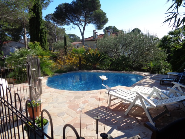 A nice , cosy and self catering apartment on the ground floor of a villa, with a huge garden and swimming-pool in the residential and elegant area of the town.Two bedrooms, one for the parents and the second for the children with a bunk bed + an folding sofa . Suitable for 3 kids ..Bathroom and laundry facilities ... Outdoor terrace for your evening meals . Next door,large room for access to French TV programs for the kids in agreement with the hostess ..The whole family has unlimited access to the swimming pool and WiFi access. About 2 km from school. A car would be needed.