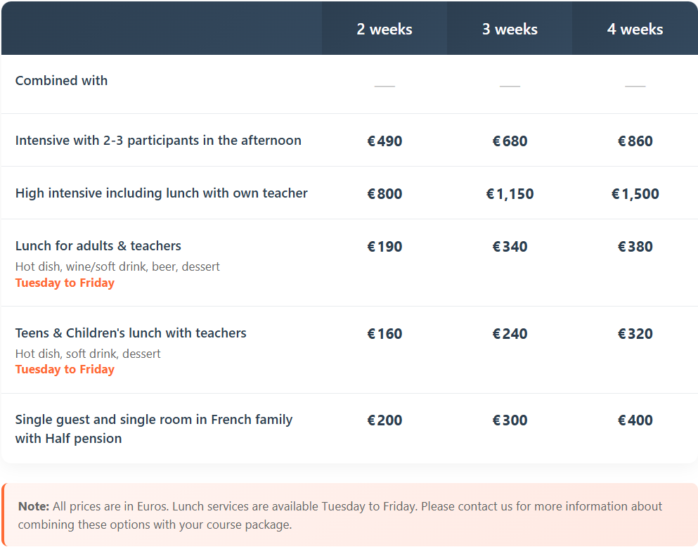 For the twelfth year in a row, we are happy to keep our gentle and affordable fees unchanged! All prices are in euros and include: